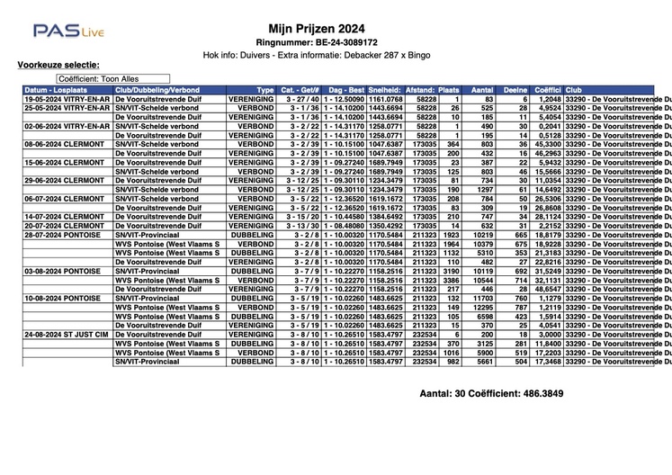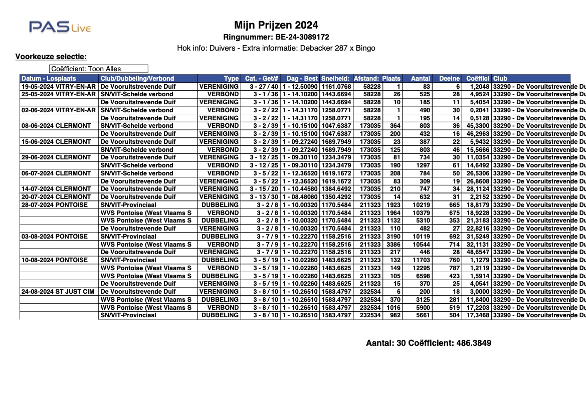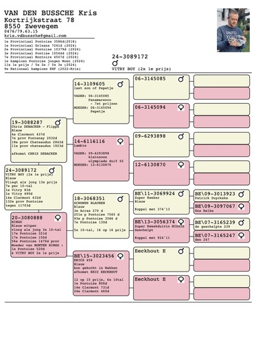 Gezien Kris enkel en alleen met de jongen speelt worden hier jaarlijks de best gepresteerde duiven na het seizoen verkocht.