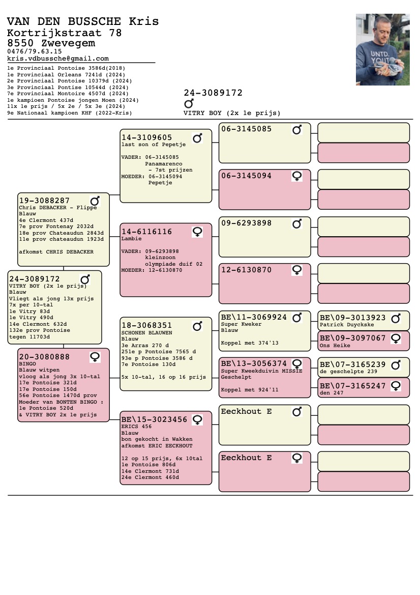 Duif 10 - 24-3089172 - VITRY BOY (2x 1e prijs)