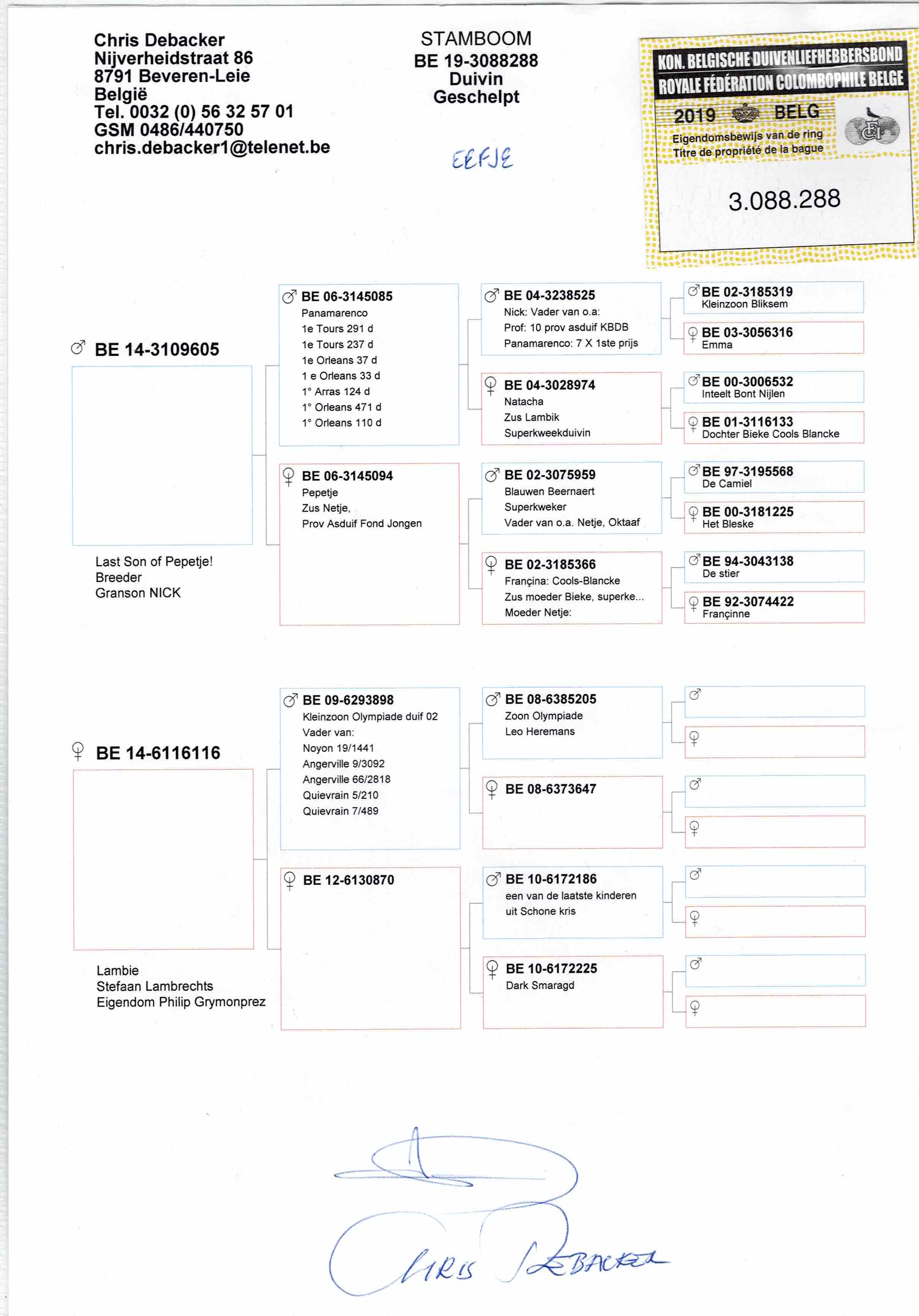 Moeder : ras Chris Debacker - EEFJE