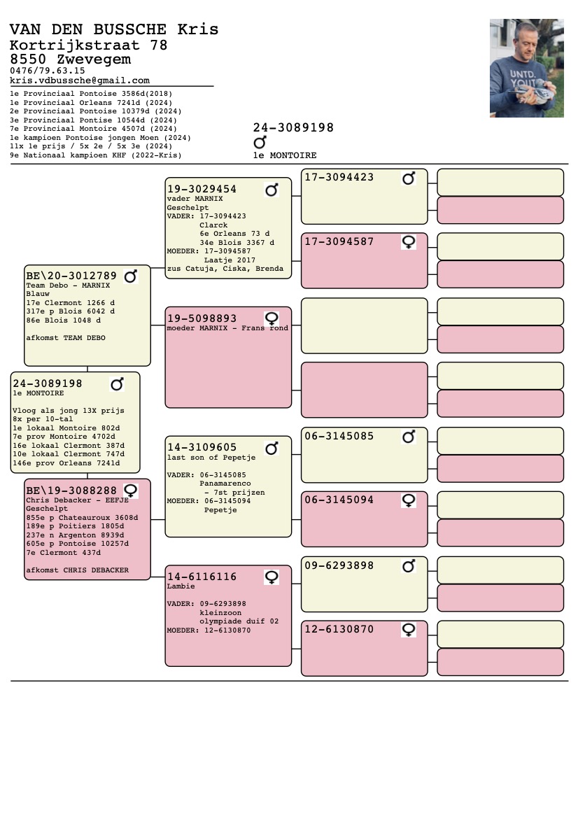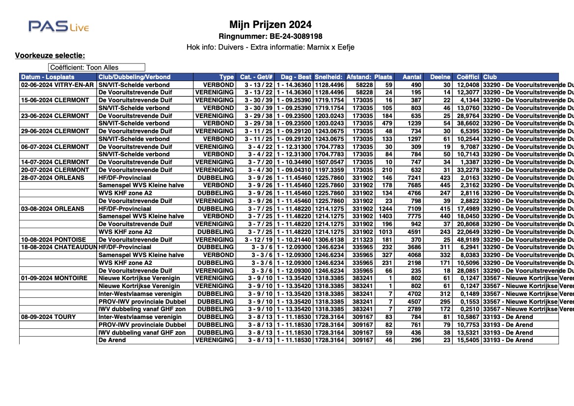 Gezien Kris enkel en alleen met de jongen speelt worden hier jaarlijks de best gepresteerde duiven na het seizoen verkocht.