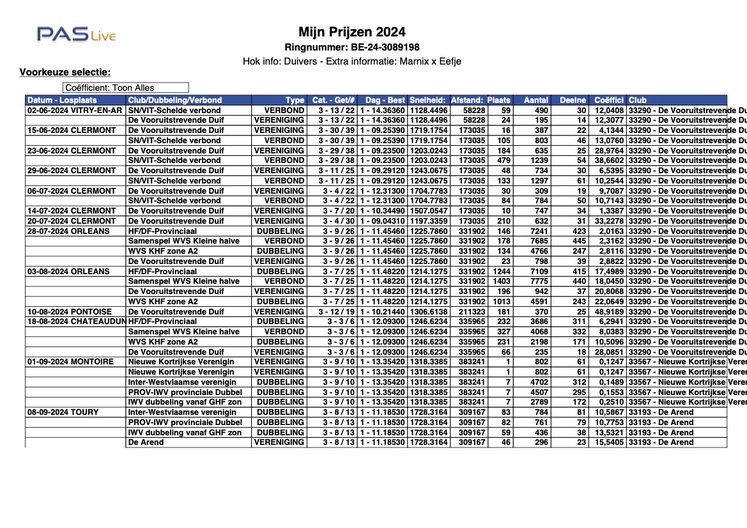 28 streng geselecteerde duivers / duivinnen met minimaal 3x per 10-tal tot duiven met 11 keer per 10-tal