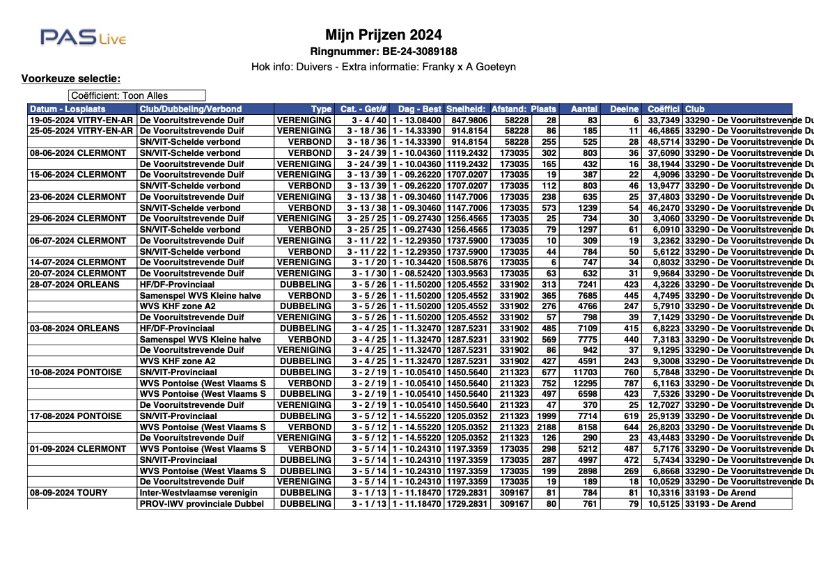 Gezien Kris enkel en alleen met de jongen speelt worden hier jaarlijks de best gepresteerde duiven na het seizoen verkocht.