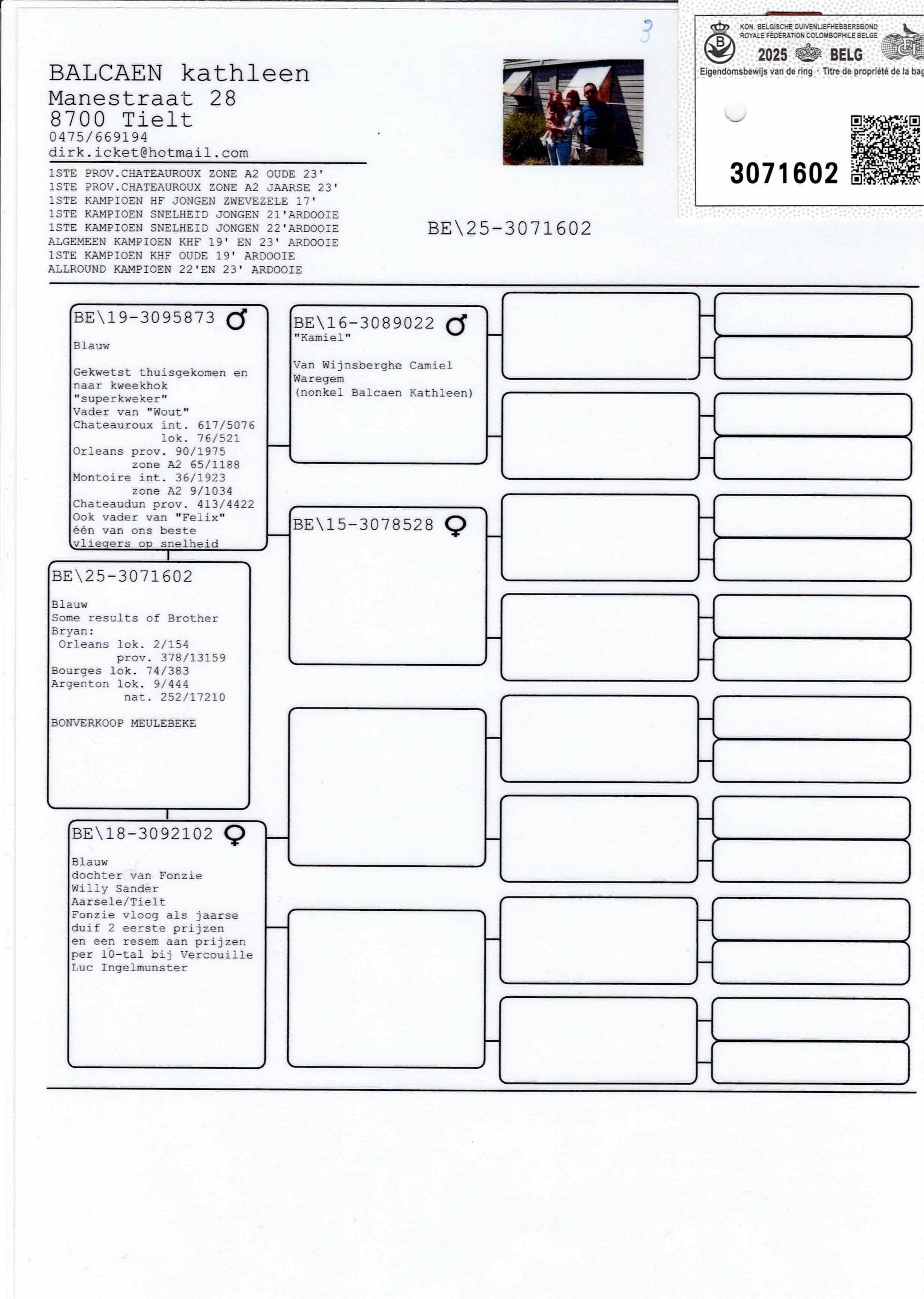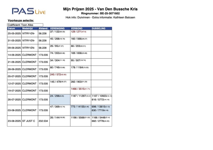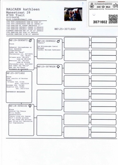 Fonzie vloog als jaarse duif 2 eerste prijzen en een resem aan prijzen per 10-tal bij Vercouille Luc Ingelmunster