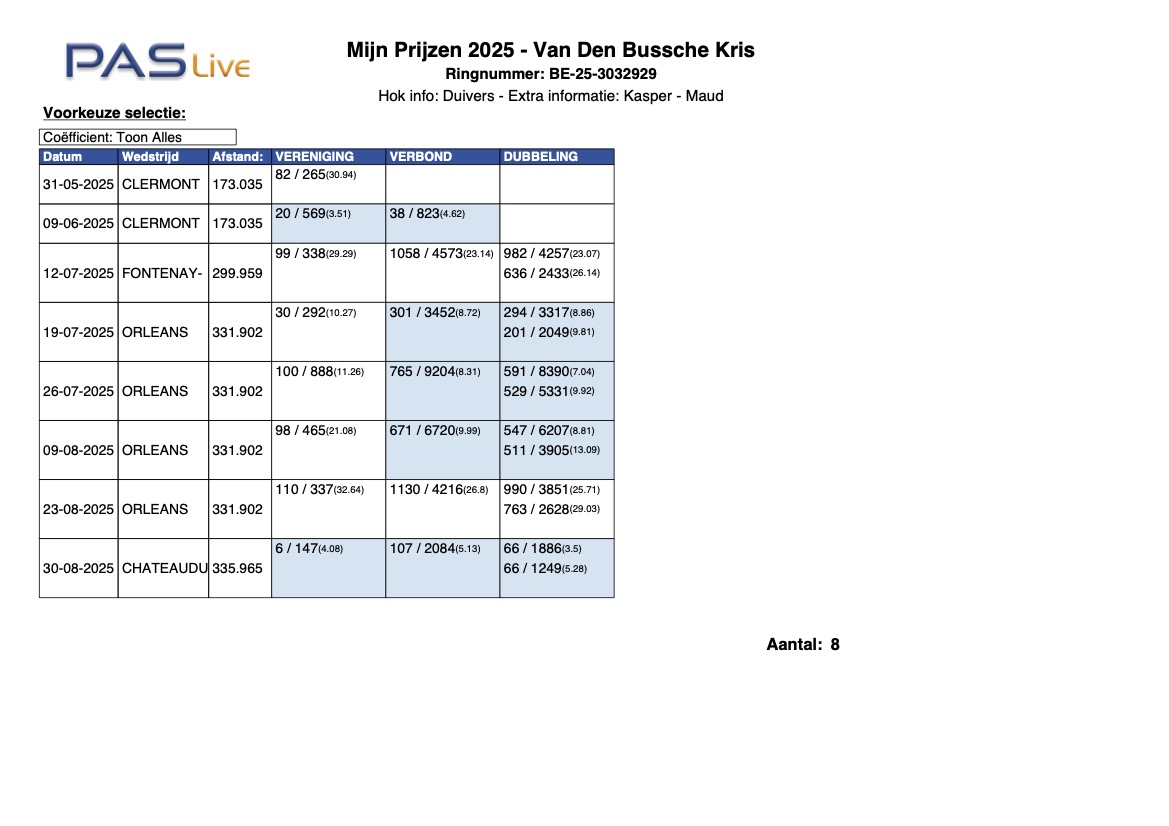 Gekocht op Pigeons4you 100% Luc Opbrouck