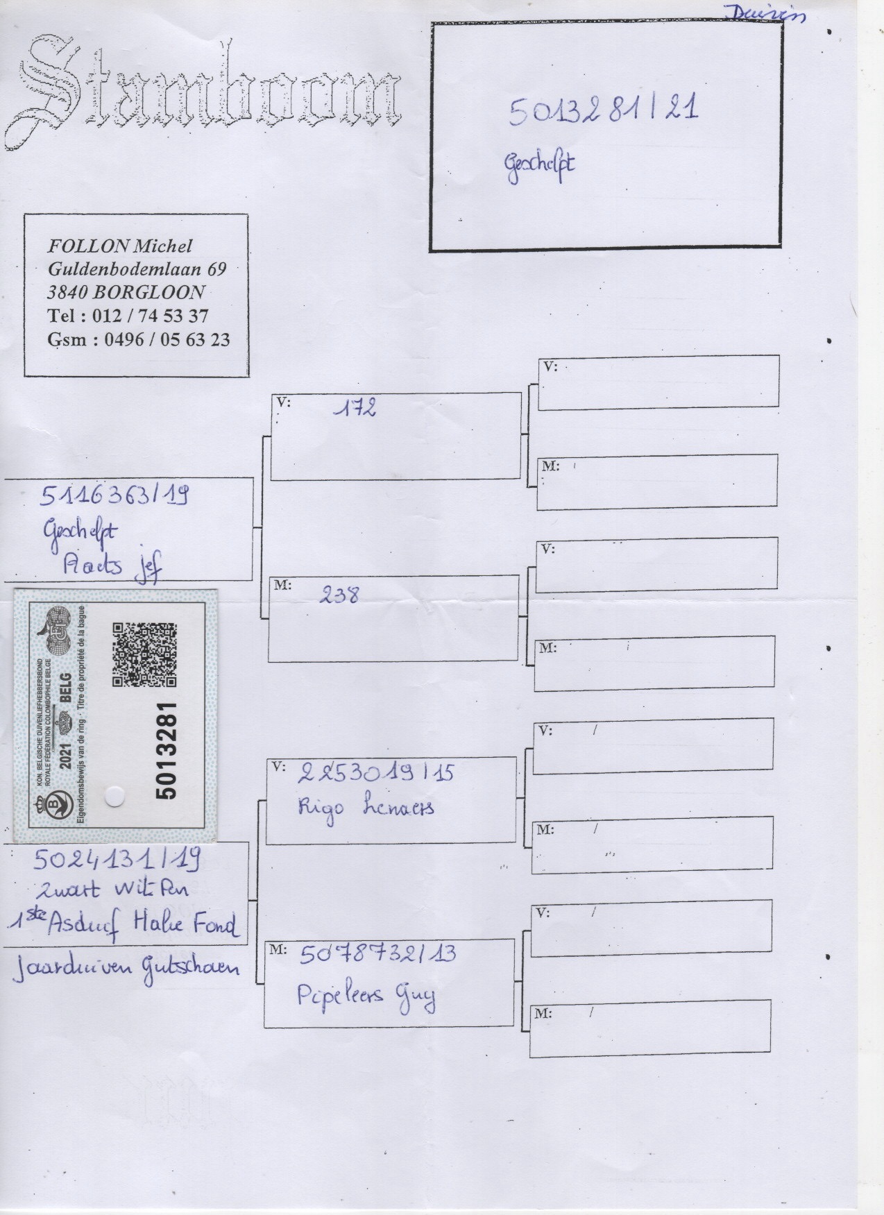- 1° Asduif HF fond Jaarduiven