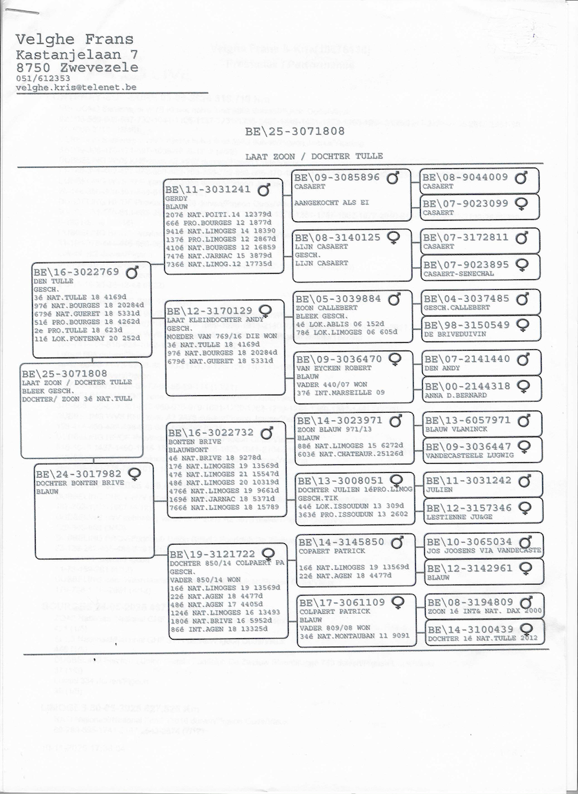 Laat jong 2025 met pedigree (zie bijlage)