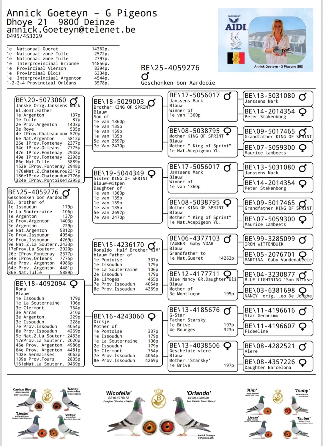 Schenkt jonge duiver 2025 met pedigree (zie bijlage)