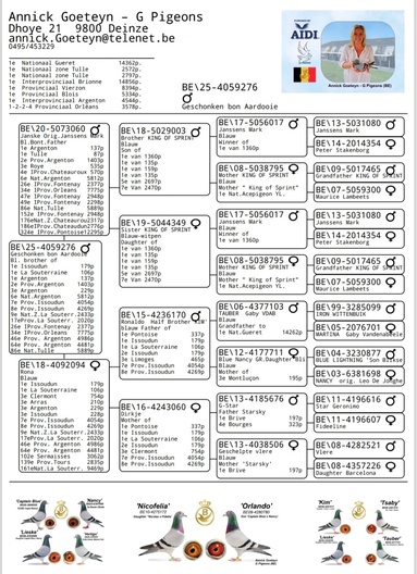 - 2 snelste duiven van 3593 oude en jonge duiven
