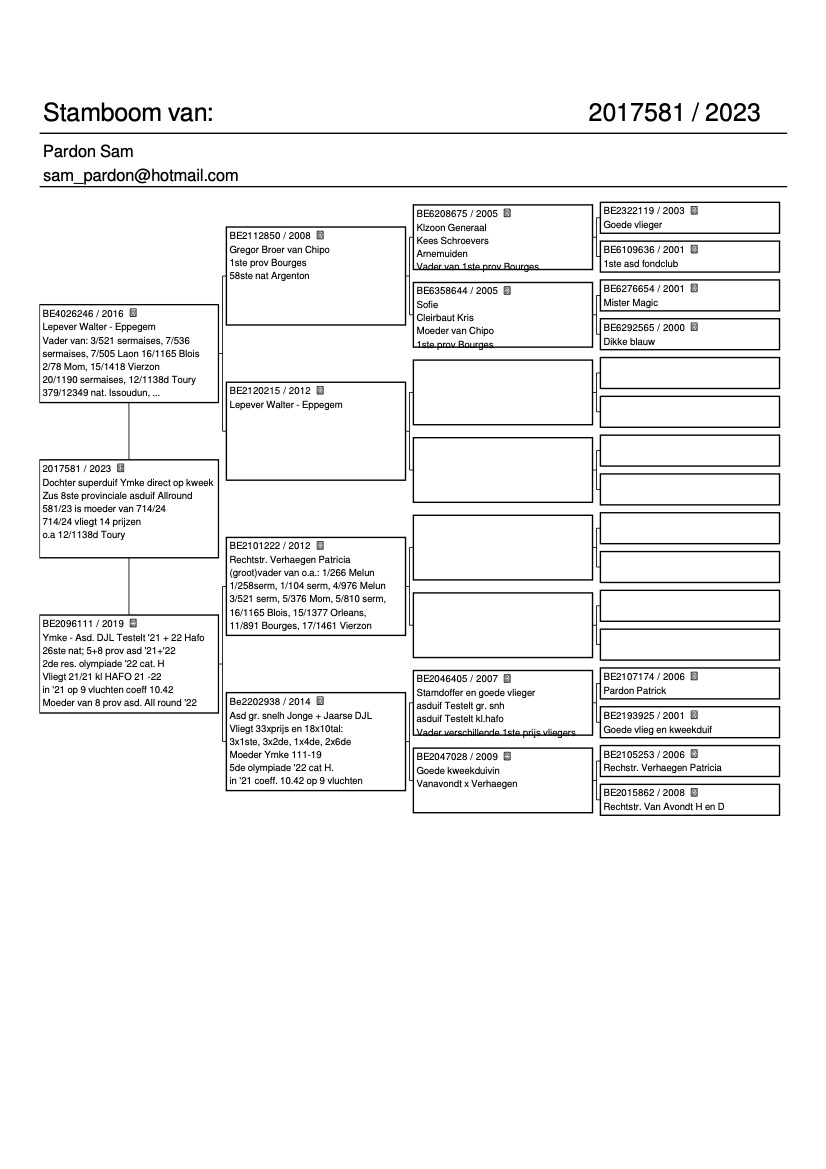 Moeder koop 2. Dochter Ymke. Beste duivin van het hok.