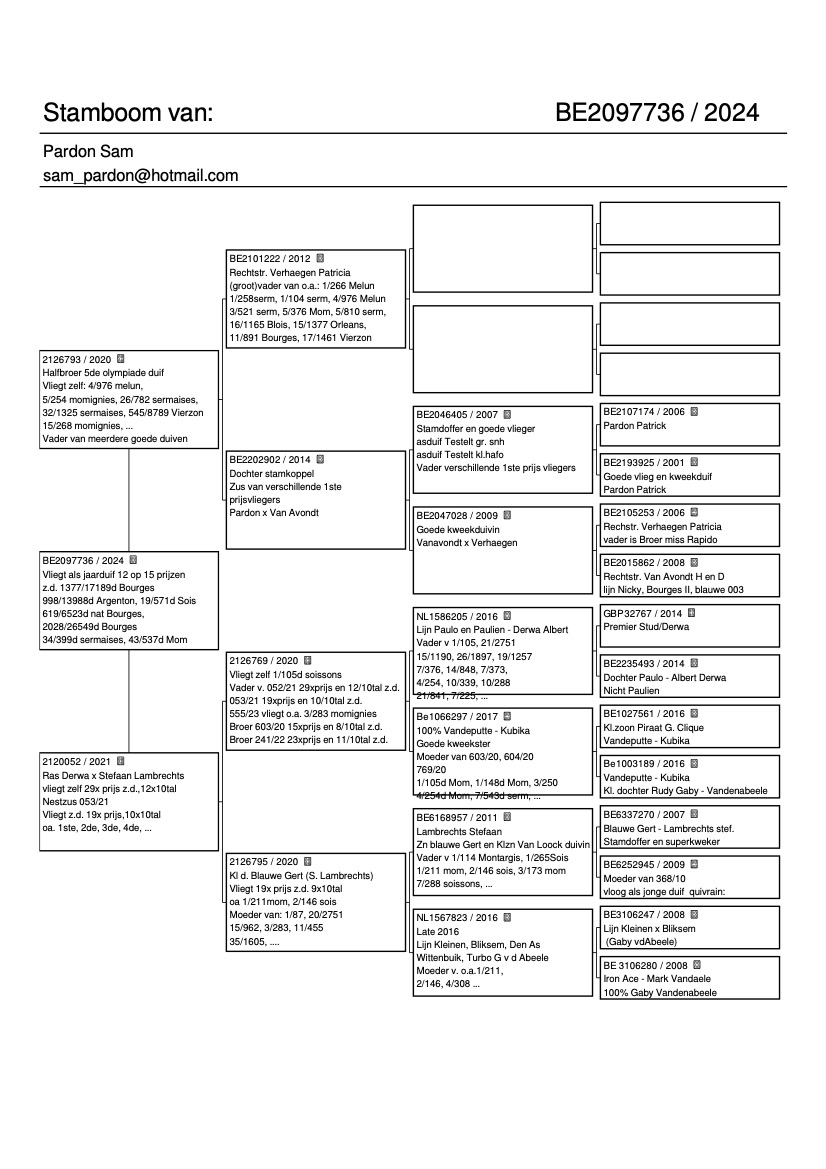 Vliegt als jaarduif 12 op 15 prijzen zonder dubbelingen. Vliegt o.a :