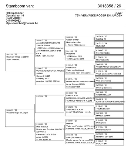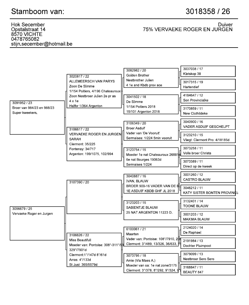 679/25: Vervaeke Roger en Jurgen (lijn 1nat asduif kbdb en serosero A. Maes)