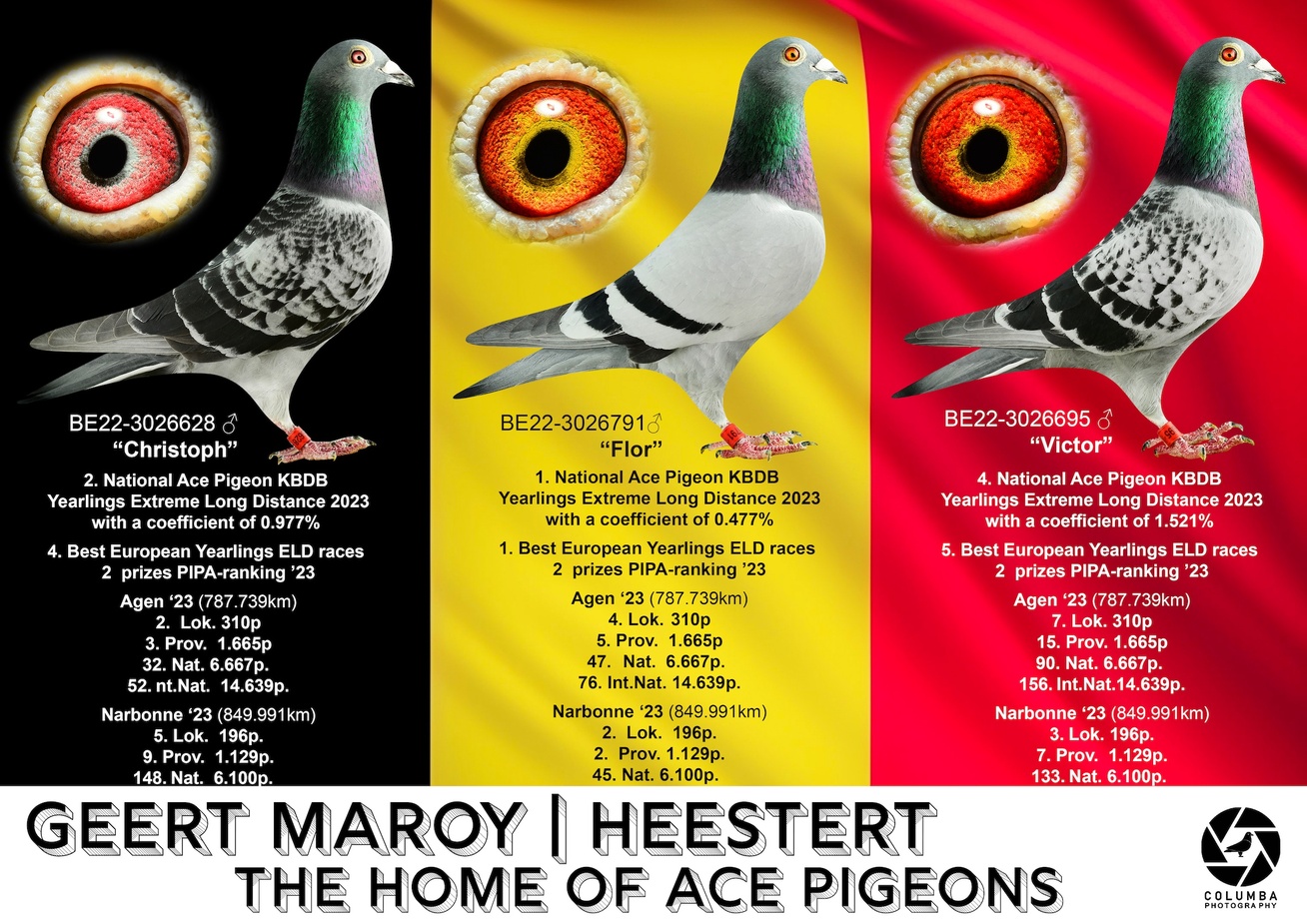 Flor heeft het edele bloed van Tomba Julien Vaneenoo en Roger Mylle x De Smeyter-Restiaen x Florea Sorin in zijn aderen.